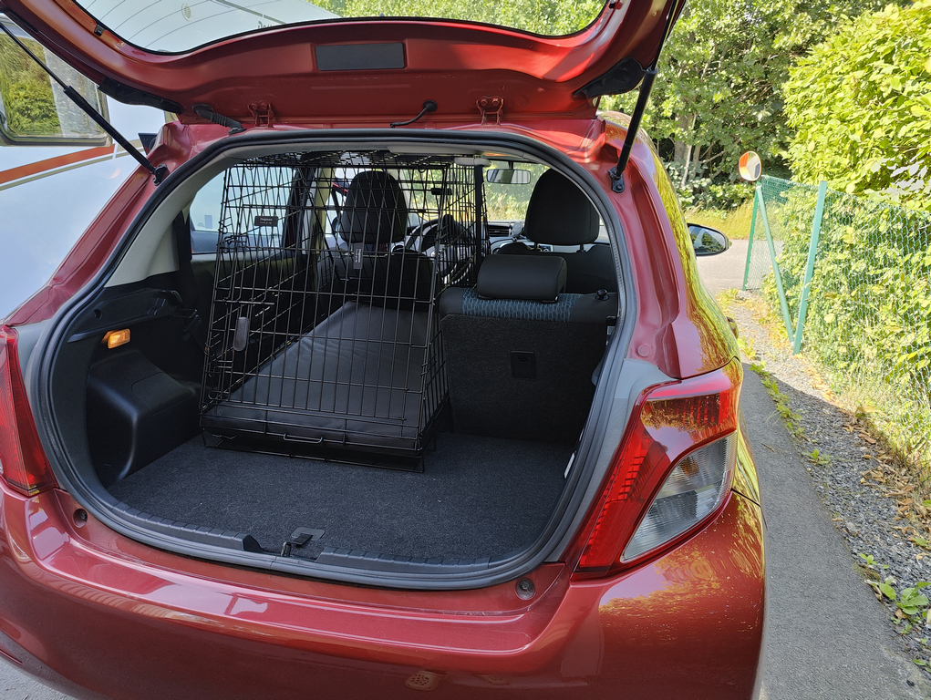 Vi har även hunnit med att göra en ”nödlösning” för att kunna ha en hund i vår lilla Toyota eftersom jag ska gå kurs med Gaston och Helén kommer att åka till Sundsvall och då vill jag att hon kör Volvon för säkerhets skull.