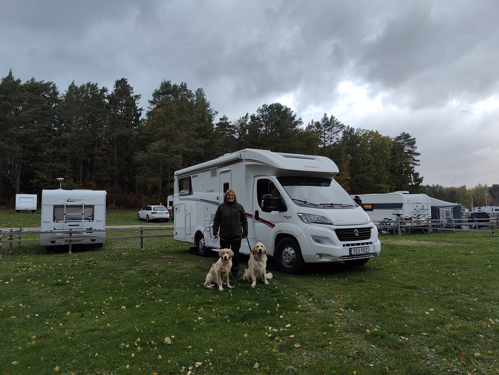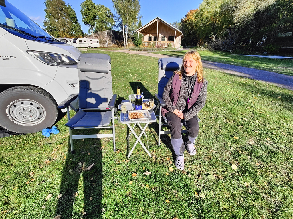 Själva campingen är lagom stor, har trevlig personal, servicehusen är bra och känslan när man kommer lite utanför högsäsongen är skönt avslappnad. Helén hade sett att de bara bemannade receptionen mellan 9 och 12 men en fråga via mail gav det enkla svaret att vi antingen kunde boka en plats på nätet eller ta en av drop-in platserna och betala via swish eller på lördag förmiddag när de var på plats. Härligt med smarta lösningar!