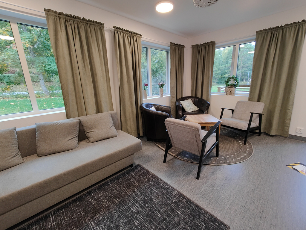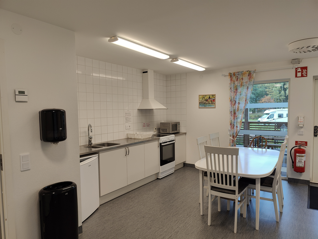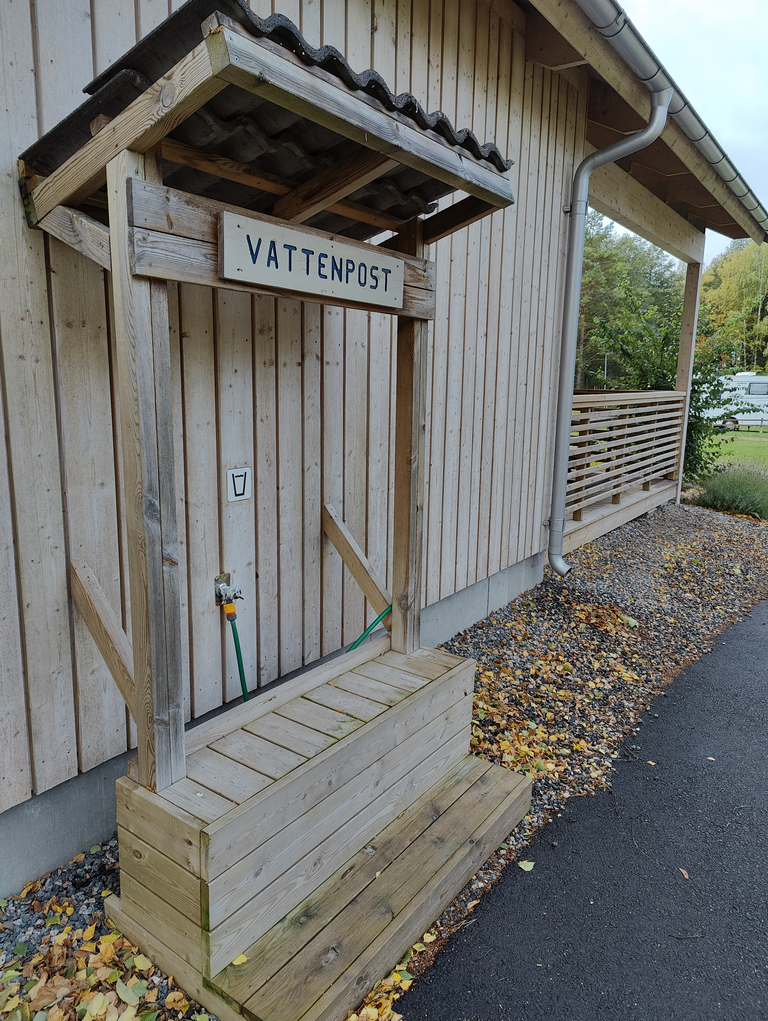 Den här gången stod vi närmast vattnet, även om det är skog mellan, och använde servicehuset som kallas ”Måshuset”. Väldigt fräscht när vi var där med bra städning. Givetvis finns kök, ett uppehållsrum med ”bibliotek” utöver toaletter och duschar. De andra gångerna har vi stått närmare receptionen och använde självklart det servicehuset som ligger där, inget fel på det heller men här var känslan ännu bättre! Nu var det ju lågsäsong och rätt lugnt och det känns ju oftast bättre när ingen står och trampar utanför toaletten när man sitter där…