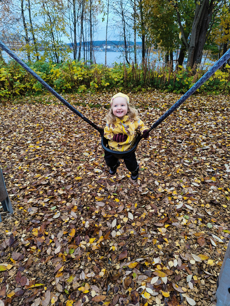 På lördagen gick Helén och Junie till lekparken och jag kom dit lite senare när jag varit på Bauhaus en sväng. Otroligt vilken glädje och energi den lilla tjejen har! Hon skulle gunga, hoppa, åka linbana och sen allt om igen.