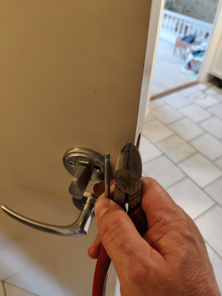 Inget besök i Sundsvall utan någon liten form av arbetsinsats, den här gången var det vredet till toalettdörren som var spräckt. Jag upptäckte det när vi kom upp och hade inte riktigt rätt verktyg med men som vanligt löste det sig så nu kan föräldrarna låsa om sig när de vill vara i fred på toa!
