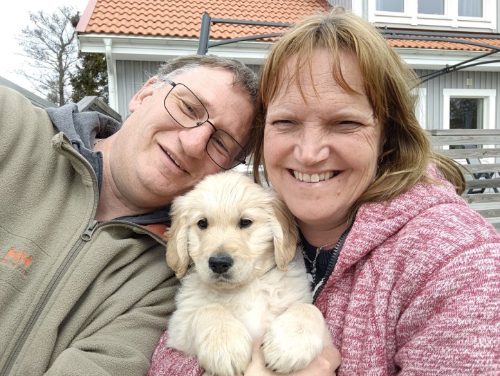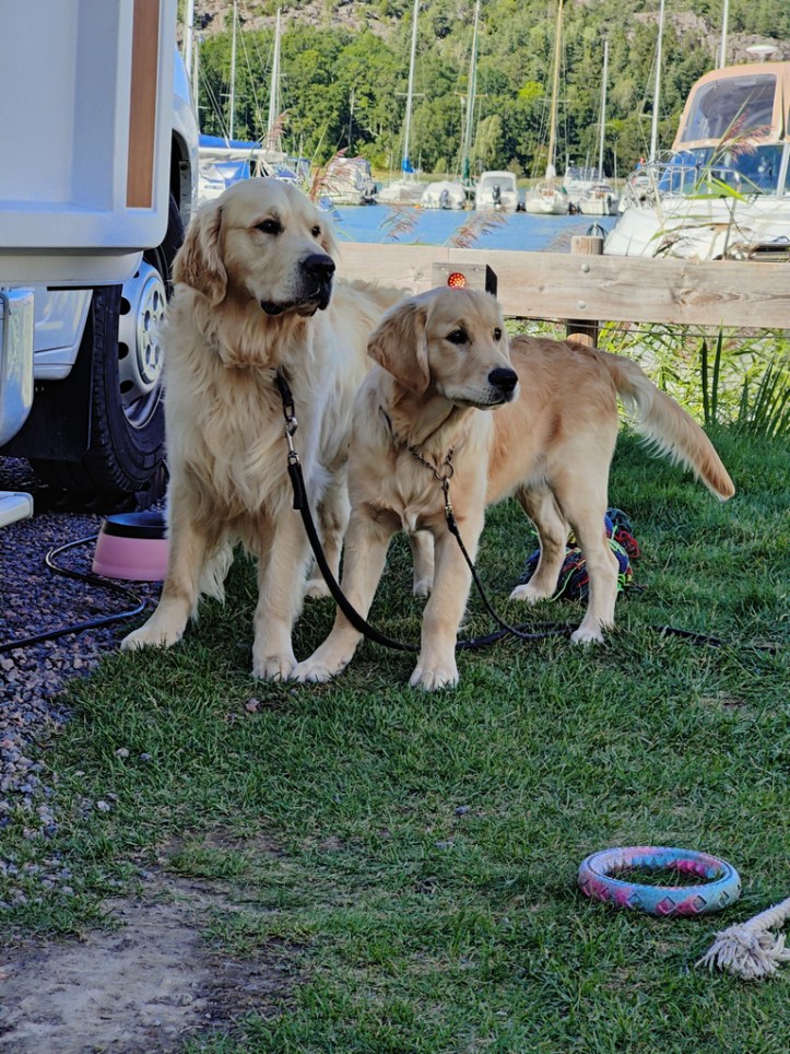 På närmare håll men ändå mer sällan har vi våra underbara vänner Helena och Göran som vi har överraskat ett par gånger på campingar. Vår underbara änglahund Atlas kommer ju från dem men vi träffades då vi köpt Golden Retriever från samma kennel betydligt tidigare. I år träffades vi i samband med Görans födelsedag efter många turer i planeringen, det blir knepigt när båda fruarna jobbar natt och helger samtidigt som Göran är väldigt aktiv i hundvärlden.