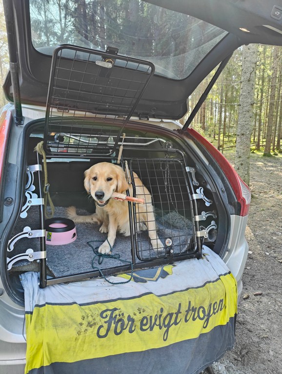 Lite mer nerver när det kan vara det sista spåret innan Gaston kan titulera sig Svensk Viltspårchampion och får prefixet Se VCH i stamtavlan. Vi kom som vanligt i god tid, vädret var bra och Fredrik hade precis avslutat ett prov med en annan hund som klarade sitt tredje. Jag väntade som vanligt vid bilen, den här gången tillsammans med Anki som är en god vän inom hundvärlden med hund från samma uppfödare som oss och ett stort intresse för viltspår som träningsform.