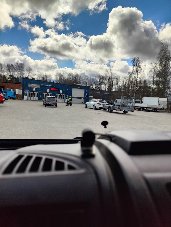 Där har inte mycket hänt sedan servicarna men idag var det dags för besiktning. Vår bil är ju över 3,5 ton så den ska ju in i lastbilshallen, den ska dessutom besiktigas var 12:e månad istället för var 14:e som gäller för personbilar, och den besiktningen sköts av två personer samtidigt och kostar också ungefär dubbelt så mycket. Även detta år blev den godkänd utan minsta anmärkning, inte så konstigt med tanke på hur få mil den rullar mellan servicetillfällena jämfört med våra personbilar.