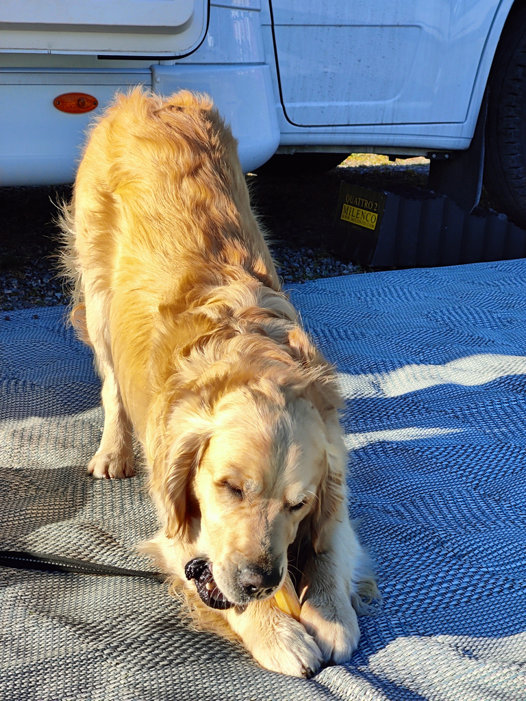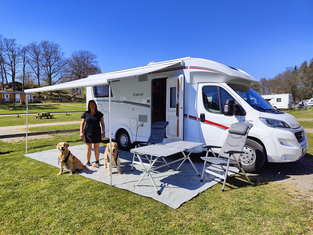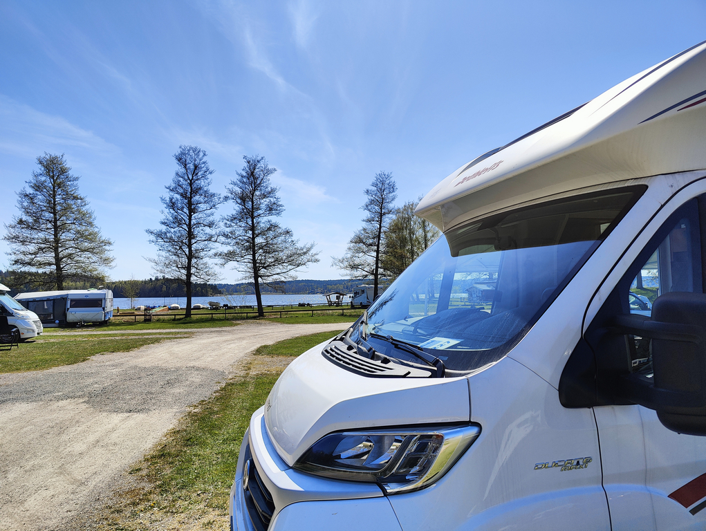 Första husbilshelgen åkte vi till Mariefred med husbilen. Årets första resa med husbilen eftersom Knasen blev dålig i magen när vi tänkte åka förra gången, magsjuk hund i husbilen vill man inte har om man kan slippa det. Som vanligt inget bokat när det är försäsong och precis som väntat fanns det gott om plats när vi dök upp strax efter lunch. Vi valde en plats med dörren mot vattnet och ingen bil bredvid när vi ställde upp oss.