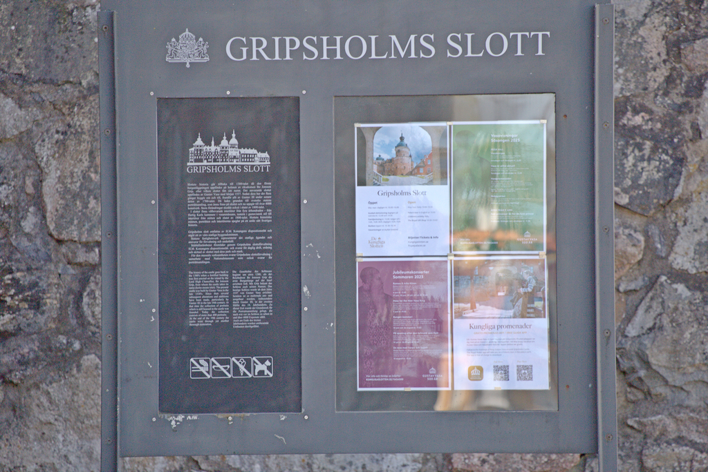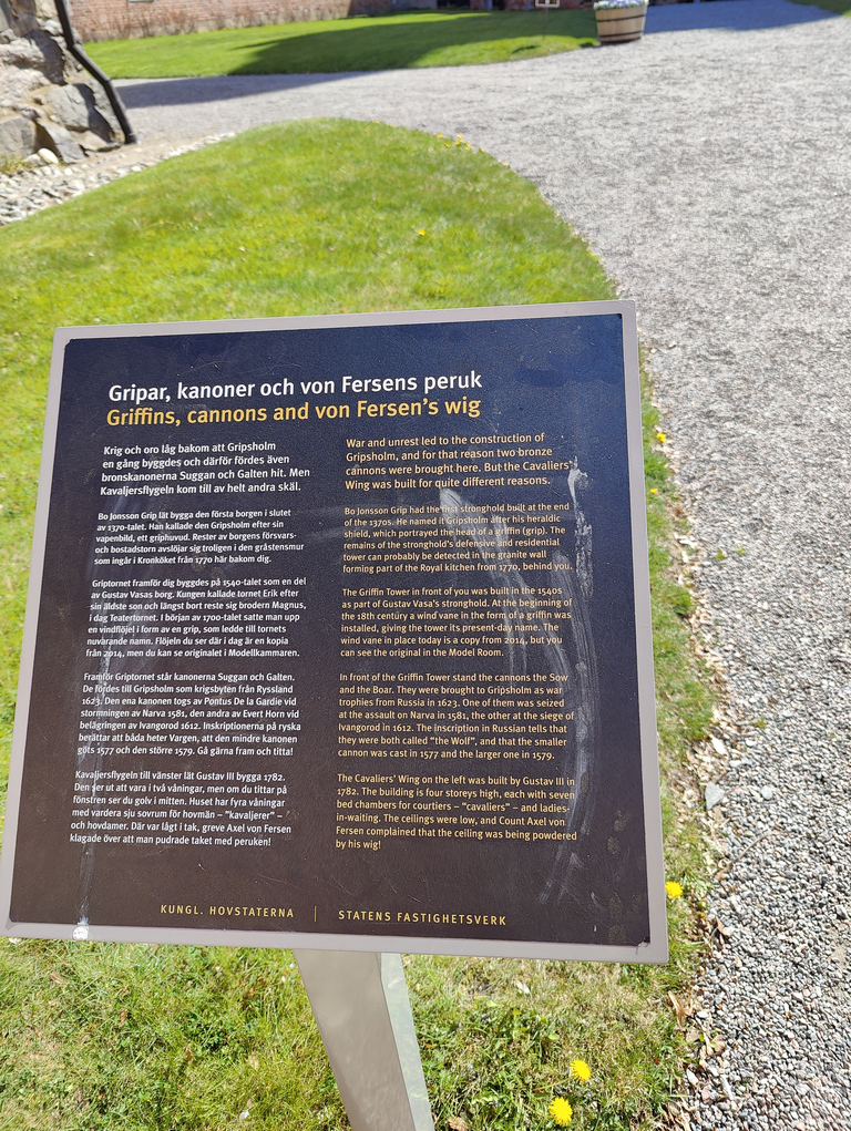 Jag har varit där med jobbet och fått en guidad visning därinne men det är inte aktuellt när man har två hundar med sig, de är välkomna på den ö där själva Gripsholms slott ligger men inte innanför murarna, där fuskade vi lite eftersom jag ville att Helén skulle se Galten och Suggan.