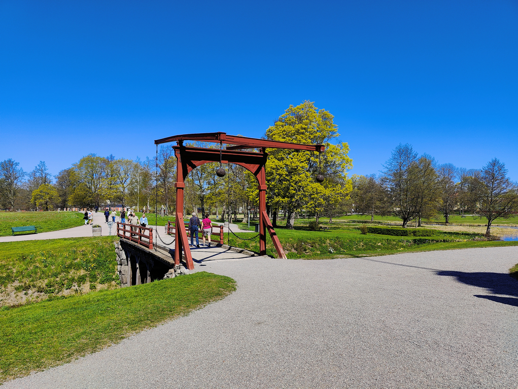 På lördagen tog vi en promenad till Gripsholms slott eftersom Helén aldrig varit där. Avståndet från campingen är några kilometer så det blev en perfekt promenad tillsammans med hundarna. Förra gången vi var i Mariefred kunde inte Helén följa med eftersom vi hade Knasen med oss och han var valp så då var det bara jag, Atlas och Izidor som tog promenaden i till stan.