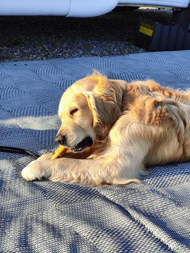 Själva campingen ligger mycket bra med platser ända ner vid vattnet eller uppe i skogen och så där vi stod mittemellan med bra utsikt. Servicehus och allt annat sköts som det ska skötas. När vi var där för tre år sedan hade campingen precis bytt ägare så då var det lite osäkerhet kring småsaker men nu var allt som det ska vara. Ägarna bor precis bredvid campingen så händer det något så är de i närheten.