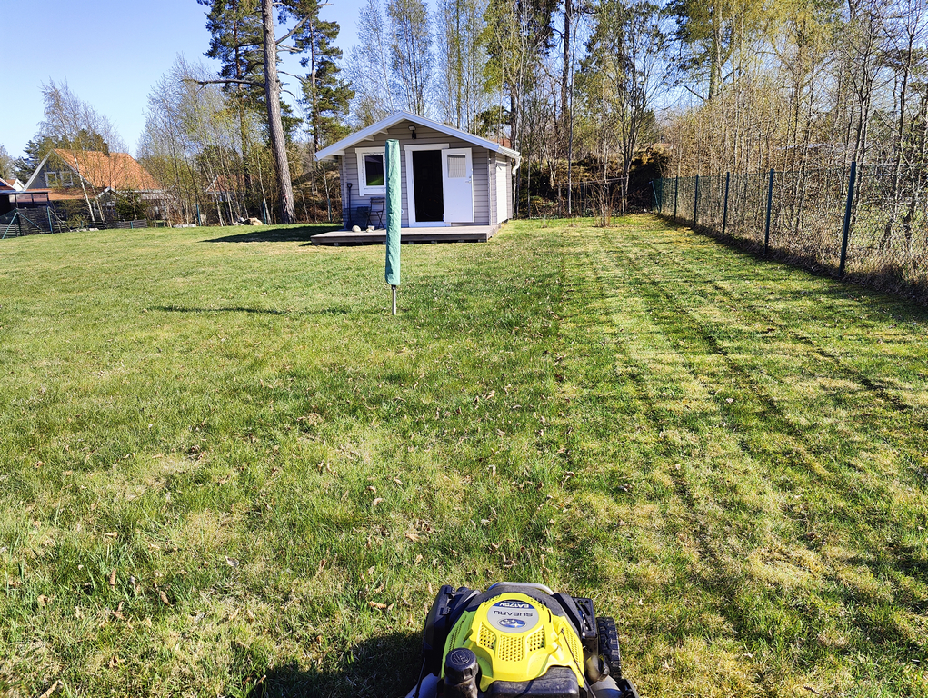 Avslutningen på helgen blev gräsklippning med efterföljande törstsläckare. Ett arbete som jag oftast tycker är skönt, följa efter en maskin i nån timme med hörselskydd på och dessutom utföra ett arbete är rena rama avslappningen.