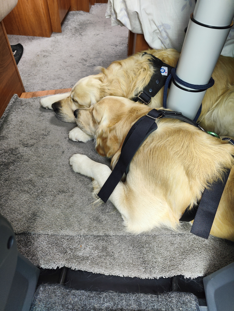 Väderprognosen sa att det skulle börja regna under natten (naturen längtar) så vi plockade in allt innan vi drog oss in i husbilen på kvällen för lite mer mystid med varandra och våra svartsjuka hundar.