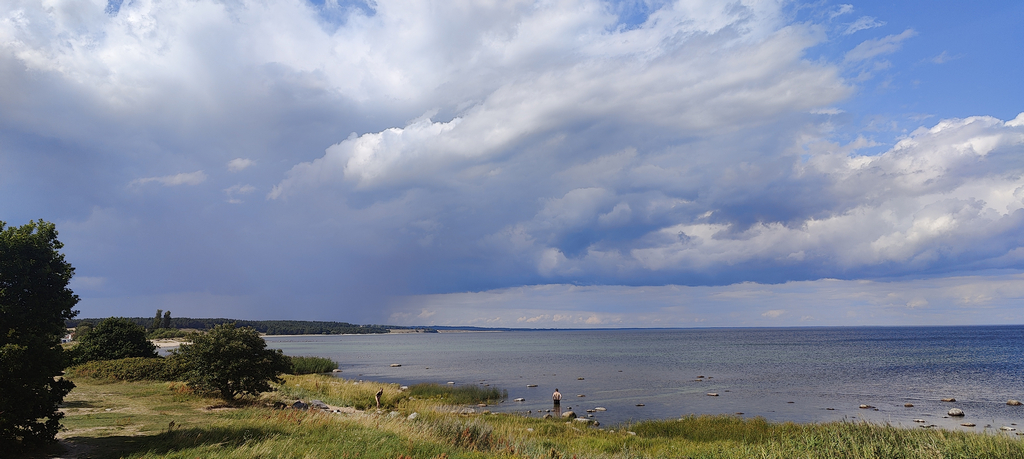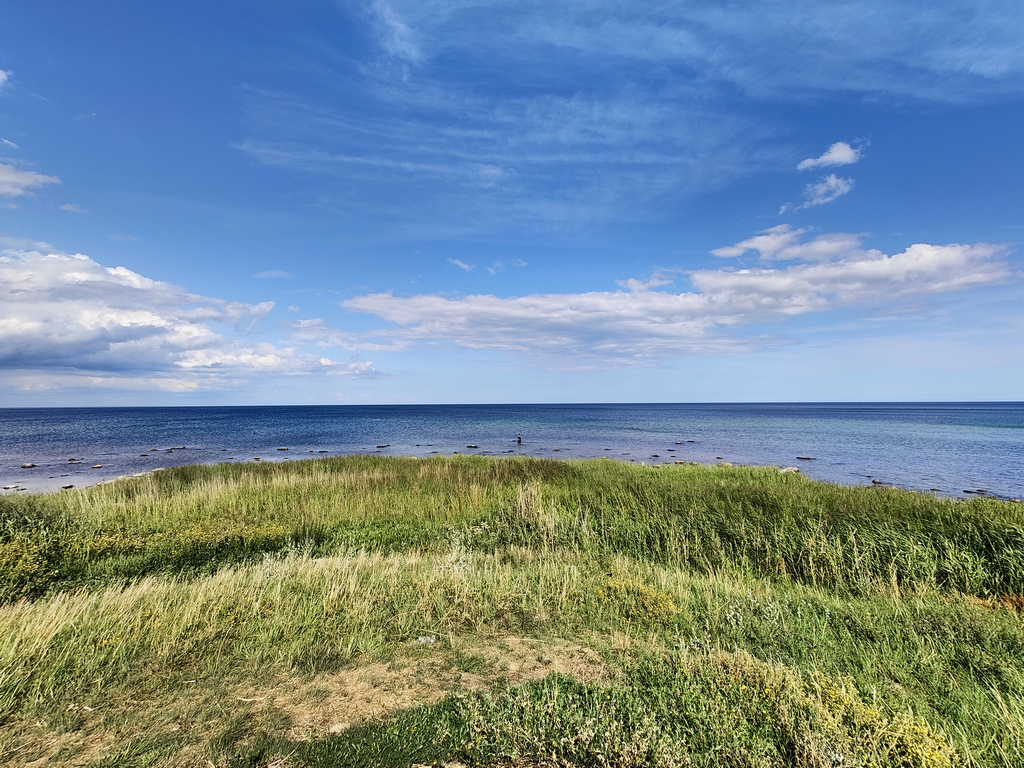 Från campingen är det bara några hundra meter nerför en grusväg till Östersjön och underbara vyer. Det känns som det är sandstrand längs hela kusten här även om vi just den här gången inte badade. Det var även längs kustvägen som vi både cyklade till musteriet och promenerade till hamnen, överallt var det helt enkelt väldigt vackert!