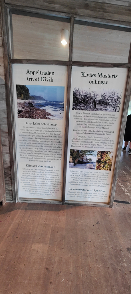 Utöver trädgårdarna finns ett museum över Kiviks musteri och dess historia som dessutom är gratis att besöka, helt klart värt ett besök men se till att gå åt rätt håll, vi valde givetvis ”fel” håll men var nöjda ändå. Givetvis ”måste” man besöka deras egen butik och handla lite must och andra produkter som de säljer och plånboken var tacksam att vi ”bara” hade en ryggsäck med oss för att ha varorna i.