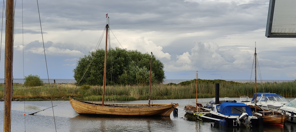 Givetvis måste man ta en promenad till hamnen i Kivik trots det opålitliga vädret, för oss blev det en av hundpromenaderna, det är inte speciellt långt att gå från campingen och hamnen är väl värd ett besök. Kul att se lite udda båtar och en praktisk variant för SSRS båt som snabbt kan komma ut och hjälpa sjöfarare med problem. Väldigt vackert är det oavsett och alla vi såg verkade njuta av livet.