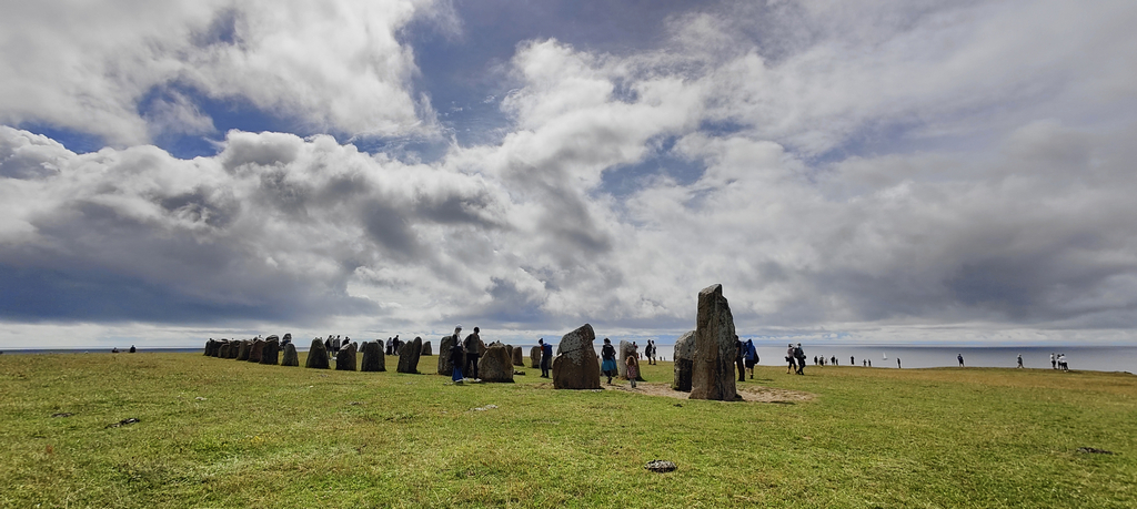 Vi lämnade Kivik i lite halvrisigt väder och styrde mot Kåseberga och Ales stenar. Första tanken var givetvis att ställa oss på ställplatsen i Kåseberga men vi kände inte riktigt för att stå kvar där utan valde att boka en plats lite närmare målet med vår resa.