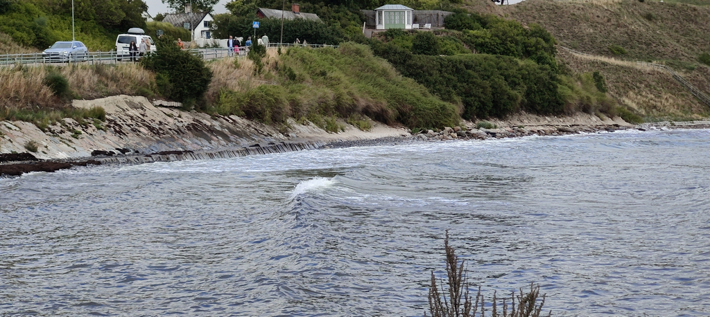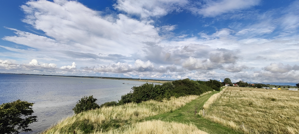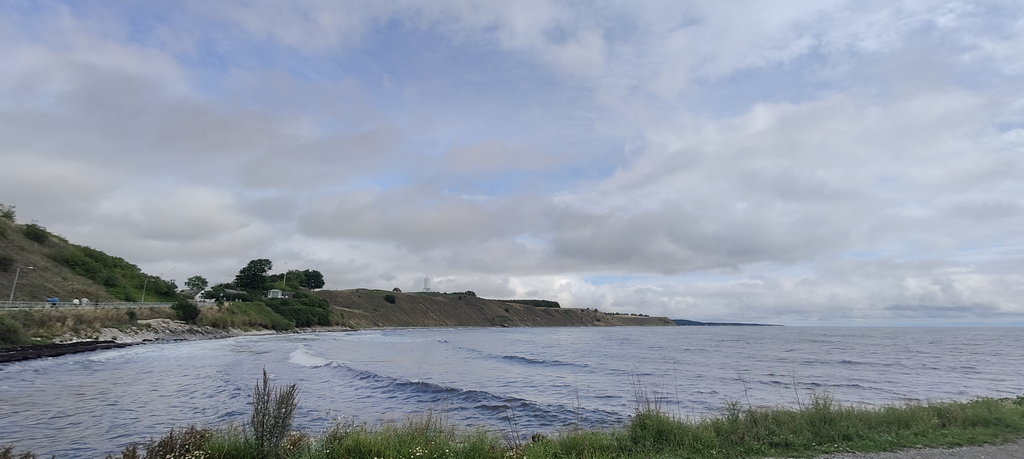 Utsikten är helt magisk längs kusten men här blir det lite extra fint eftersom det faktiskt finns något på horisonten. Antingen tittar man mot Danmark, ett gammalt kärnkraftverk eller hamnen i Landskrona beroende på om man tittar utåt, åt vänster eller åt höger.