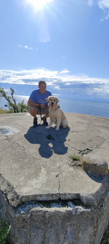 Även inne i samhället finns restauranger och småshoppar men här ändras fokuset lite mot surfing, mysigt trots det växlande vädret. Oavsett vad man tycker om stenarna så är utsikten väldigt fin och det är ju lite speciellt att sevärdheten står mitt i en kohage så man får se sig för när man sätter ner fötterna. Inga problem att ta med sig hundarna upp så länge de inte får för sig att dumma sig med kreatur eller andra besökare. Man passerar en färist när man går in i hagen som vissa hundar kan tycka är lite besvärlig men det finns en spång som våra hundar valde istället.
