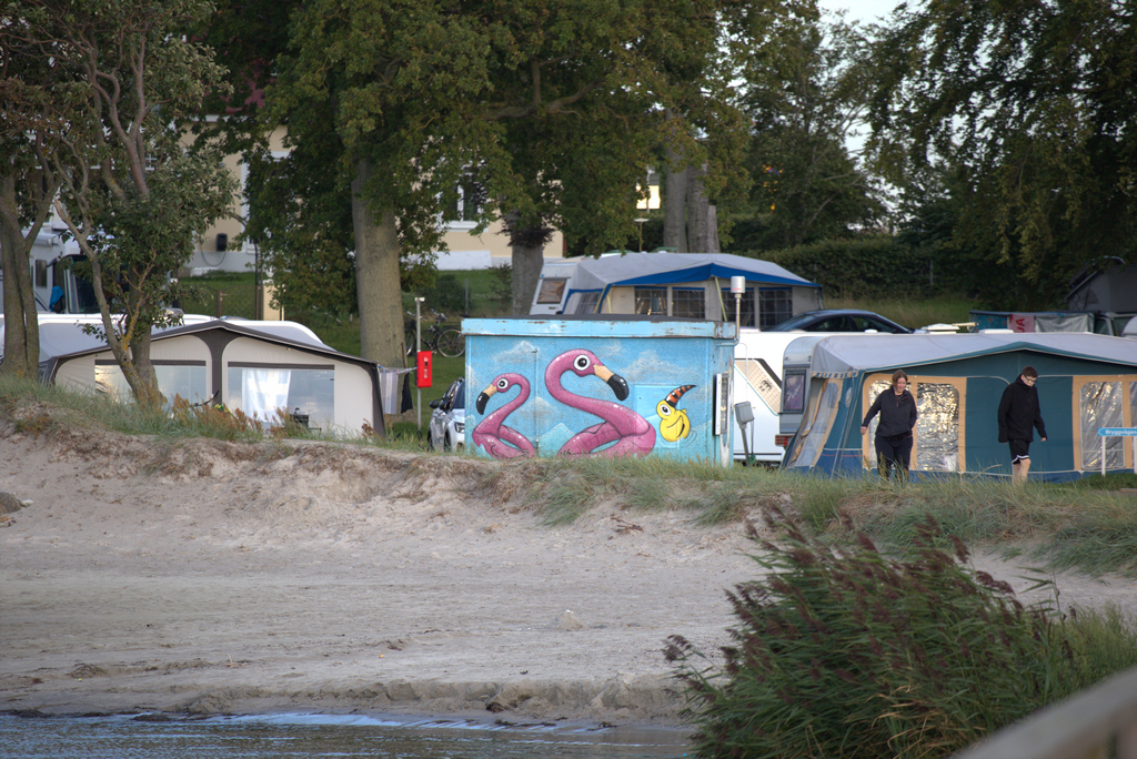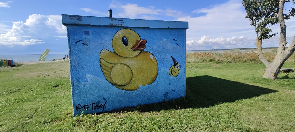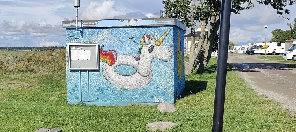 Konst kan skapas på många sätt. Av något skäl har några byggnader förskönats med lite konst vilket är betydligt roligare än grå betong! Även fordon kan anses vara konst, extra roligt med tjänstebilen på campingen!