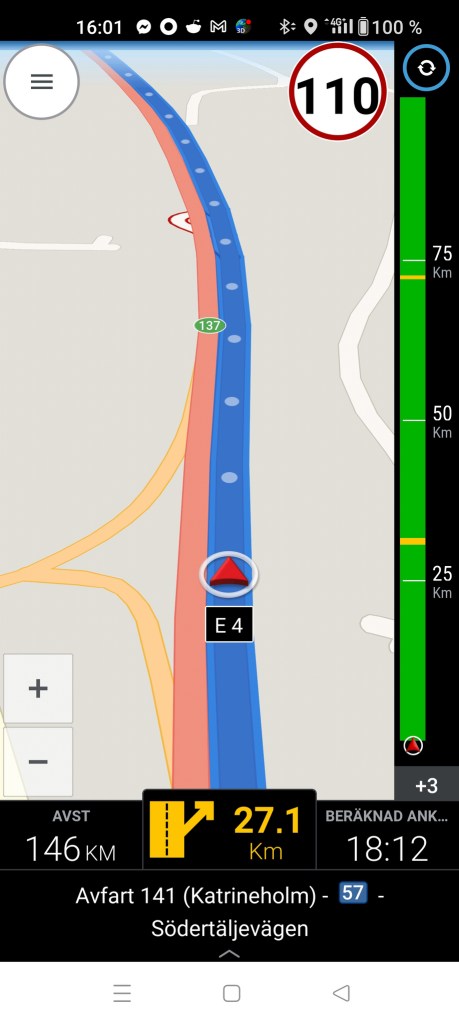 Jag testade att använda appen Copilot för navigering. De har en testperiod som räckte för hela resan och till skillnad från Waze som vi normalt använder kan man ställa in fordonets vikt, höjd och annat som kan behövas för att ge en smärtfri resa. Överlag fungerade den bra och resvägen överensstämde med Waze som vi körde parallellt i vår gamla platta från Samsung. På hemvägen fick den dock för sig att vi inte kunde köra E4’n efter Nyköping eftersom det skulle vara avstängt i höjd med Södertälje, det stämde inte! Vi kommer sannolikt att fortsätta använda Waze där vi dessutom har lagt in en del resmål sedan länge.