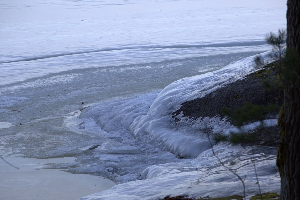 Lite längre ut håller isen på att tappa greppet mot det öppna vattnet, jag såg till och med någon som var ute med en mindre båt men det kändes inte lockande över huvud taget!