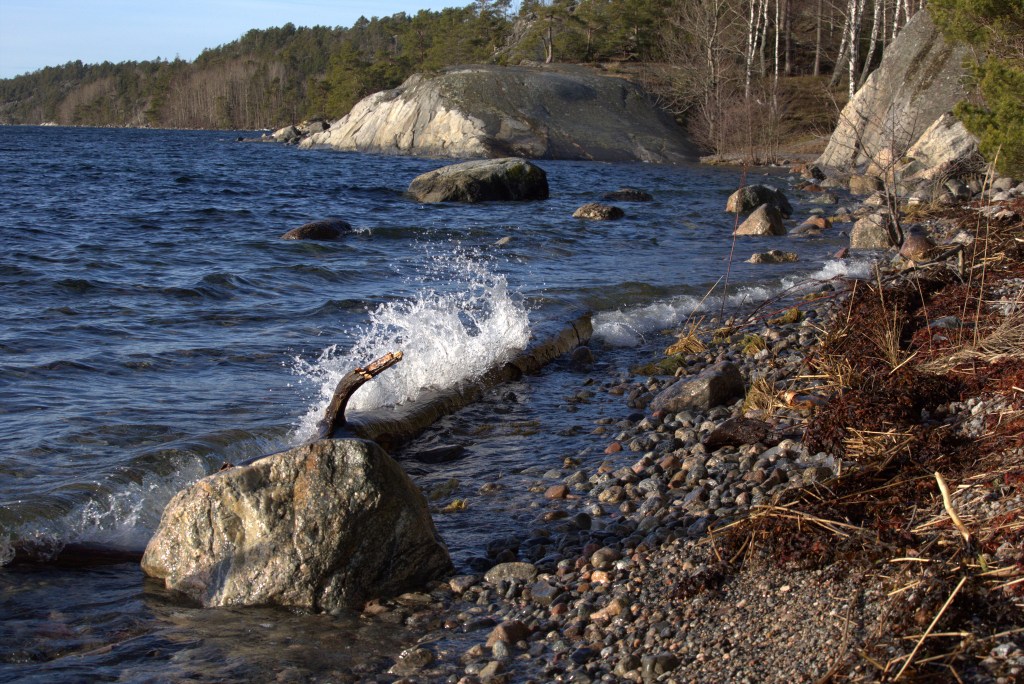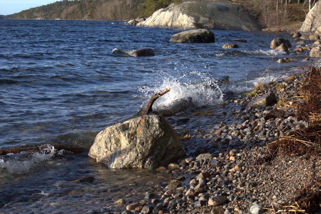 Vatten i rörelse som träffar ”fasta” objekt är tacksamt att fotografera om man har en tillräckligt snabb kamera. Sedan ett antal år är min ”stora kamera” en Canon EOS D6 som levererade även denna dag!