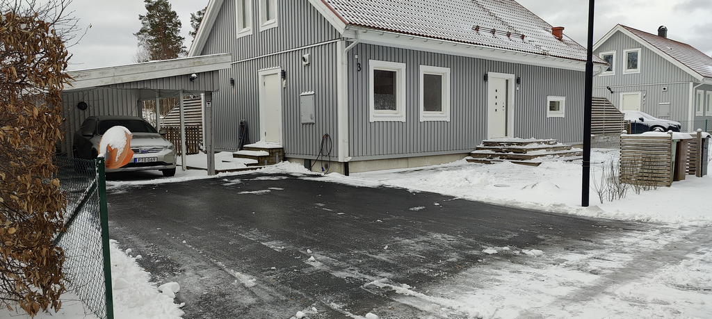Strax efter klockan 10 mötte vi upp Mikael på Caravanhallen i Västerhaninge, han trodde att vi skulle backa på leveransdatumet… Inte vi inte! En lite väl byråkratisk process (älskar inte Nordea…) tog väl en halvtimme och sen en kort (mycket kort) genomgång av husvagnens funktioner. Vi ställde några ledande frågor men egentligen var det inga nyheter, vi hade ju en Kabe Safir från 2010 före husbilen. Mikael tyckte att vi skulle köra in och kroka på inne på verkstadsgården, ingen som helst snöröjning utan bara en massa slask och is på hela gården.