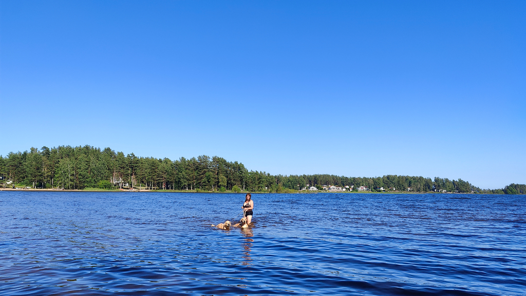 Campingen heter ju Bomstadbaden och givetvis är badet centralt på campingen! Lite undanskuffat ute på en udde finns en liten badstrand för hundarna. Långgrunt och helt OK botten så vi får nog säga att den är ovanligt bra så länge man inte jämför med Norrland där hundarna är välkomna på den vanliga stranden på flera platser.