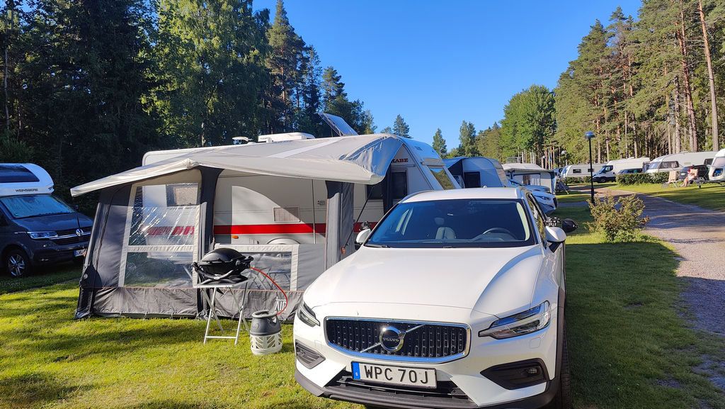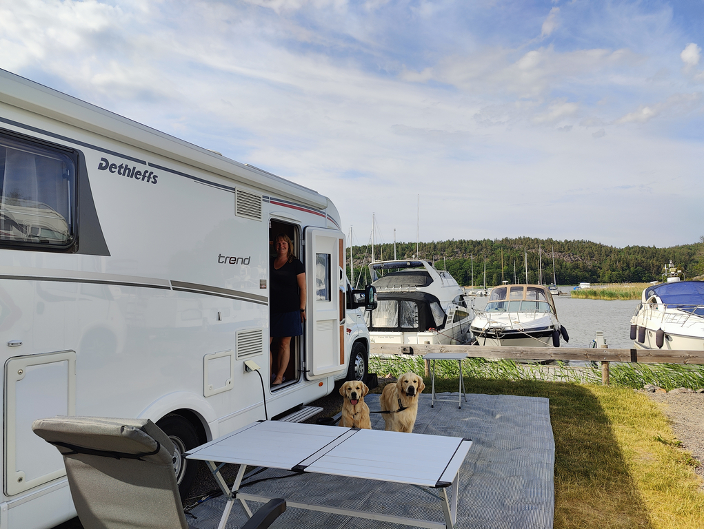 Husvagnen invigdes med en kort resa till Gålö, det är skönt med nära hem om något strular för mycket. Och en del strul blev det givetvis! Läckande kran i badrummet och en icke fungerande AC, helt ny och nymonterad i samband med leveransservice. AC är ju ett måste när det blir varmt och man har hundar som inte gillar värme. Allt löstes av Caravanhallen utan några egentliga problem bortsett från tidsåtgången.